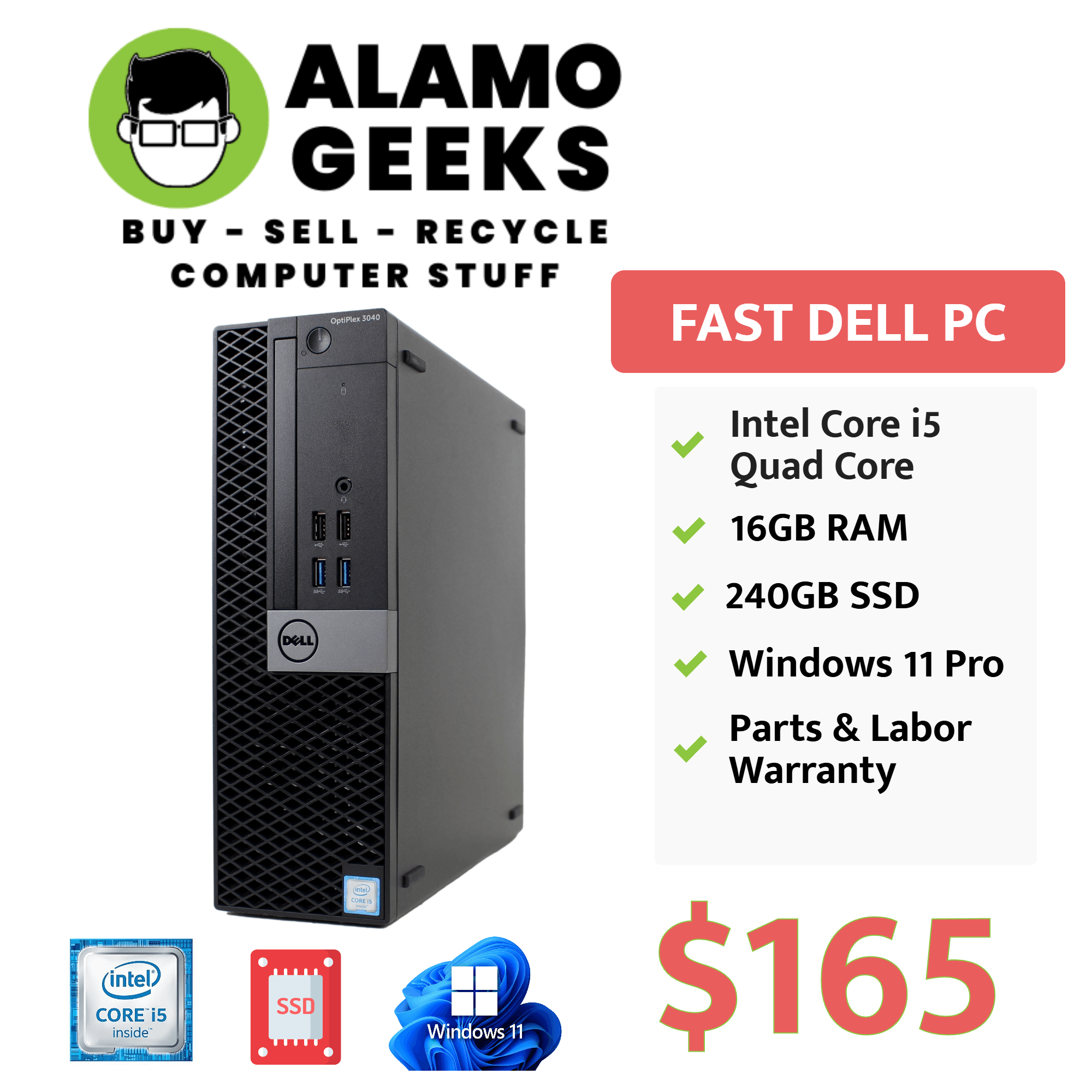 The Alamo Geeks LLC Advantage: By choosing an Alamo Geeks LLC certified refurbished system, you secure professional-grade performance at a stable value, avoiding the heavy retail inflation currently affecting new computer inventory.